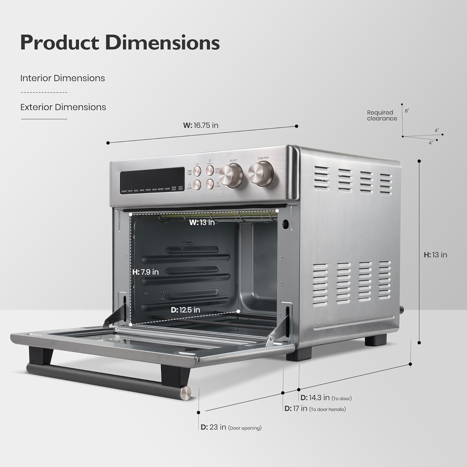– The larger capacity (30%-60% more than traditional units) is ideal for families or entertaining, allowing you to cook larger meals such as a whole chicken, multiple servings of fries, or a 12-inch pizza all at once.