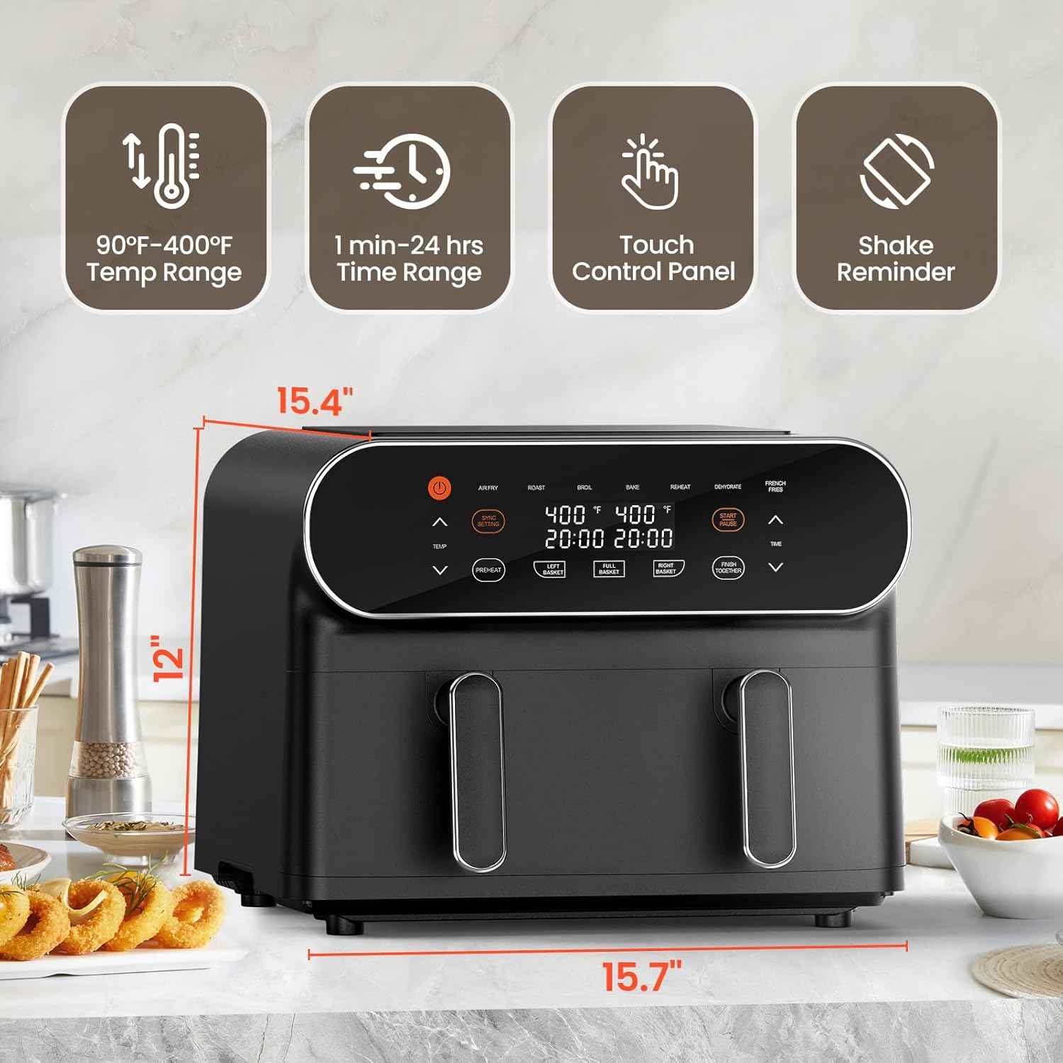 – Simultaneous Cooking: The air fryer allows you to cook two different meals simultaneously, ensuring both are ready to serve at the same time, minimizing kitchen chaos.
