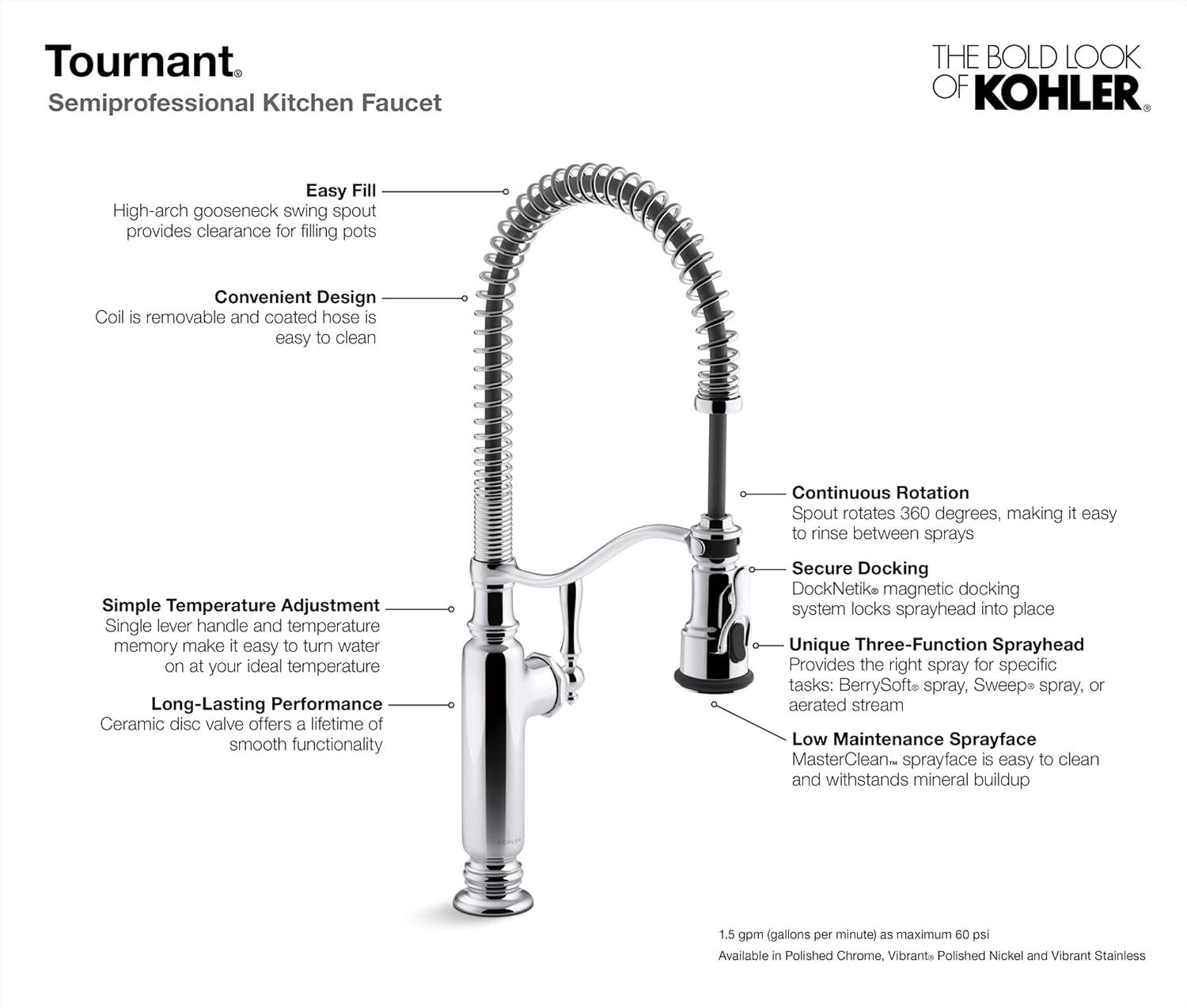 – The DockNetik magnetic docking system securely locks the sprayhead into place when not in use, preventing it from dangling or getting in the way.