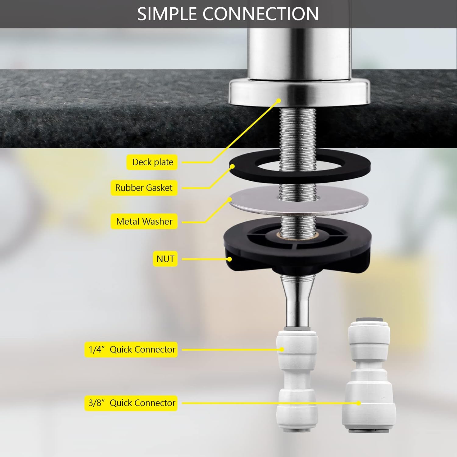 One of the standout features of this faucet is its 3-way spray setting, which includes stream, spray, and pause options. The stream setting is perfect for filling up pots or glasses with water, while the spray setting is ideal for rinsing fruits and veggies. The pause option helps prevent splashing during multitasking in the kitchen. Additionally, the SUS304 stainless steel material used in the construction of this faucet is not only durable but also food-grade, ensuring the safety of your drinking water.