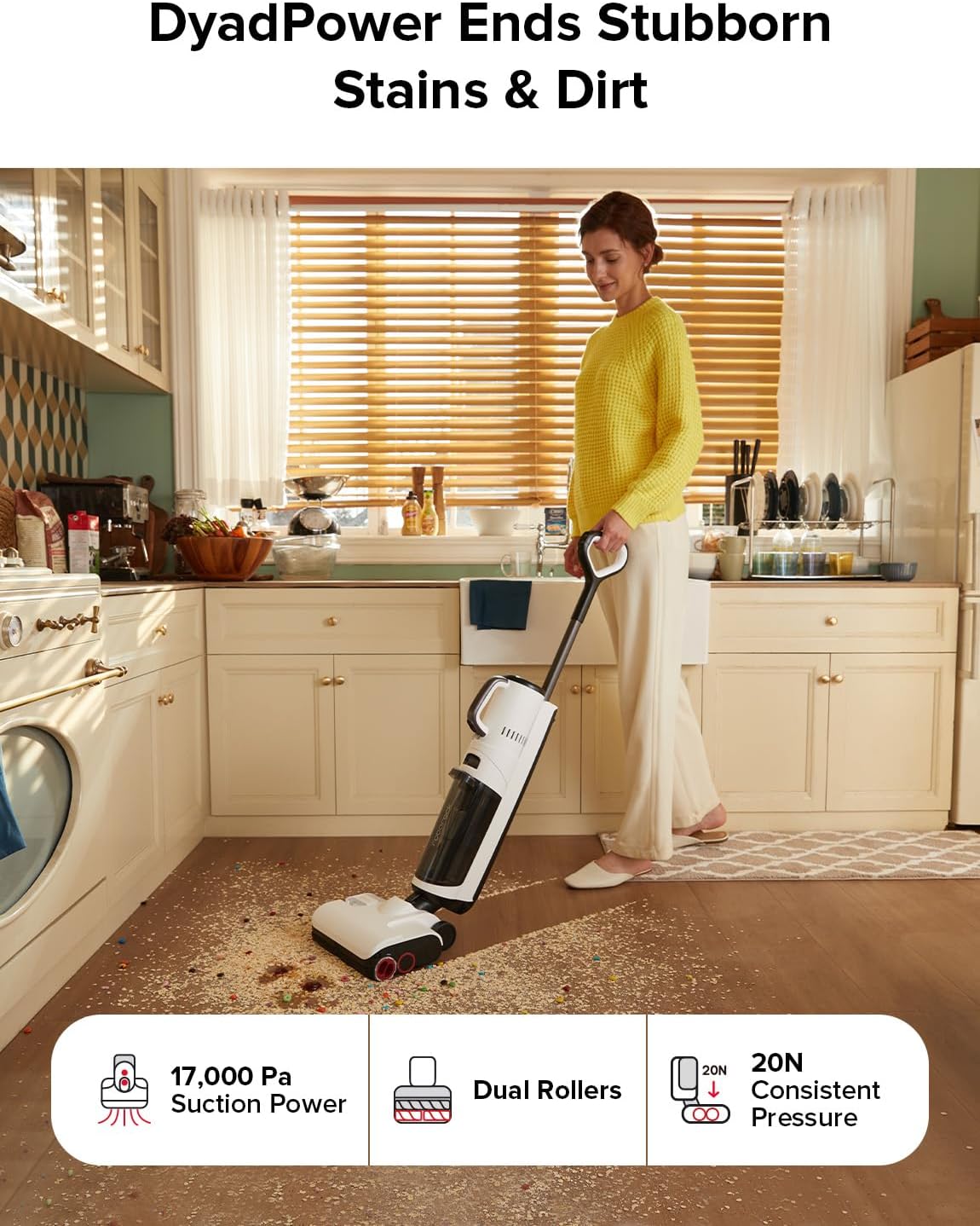 Efrain rated this product 5.0 out of 5 stars and mentioned that the Dyad Pro Combo is powerful and perfect for quick cleanups. He highlighted the 17000Pa suction power, cordless design, and 5-in-1 functionality. Efrain also appreciated the self-cleaning and drying feature, making maintenance easy and efficient.