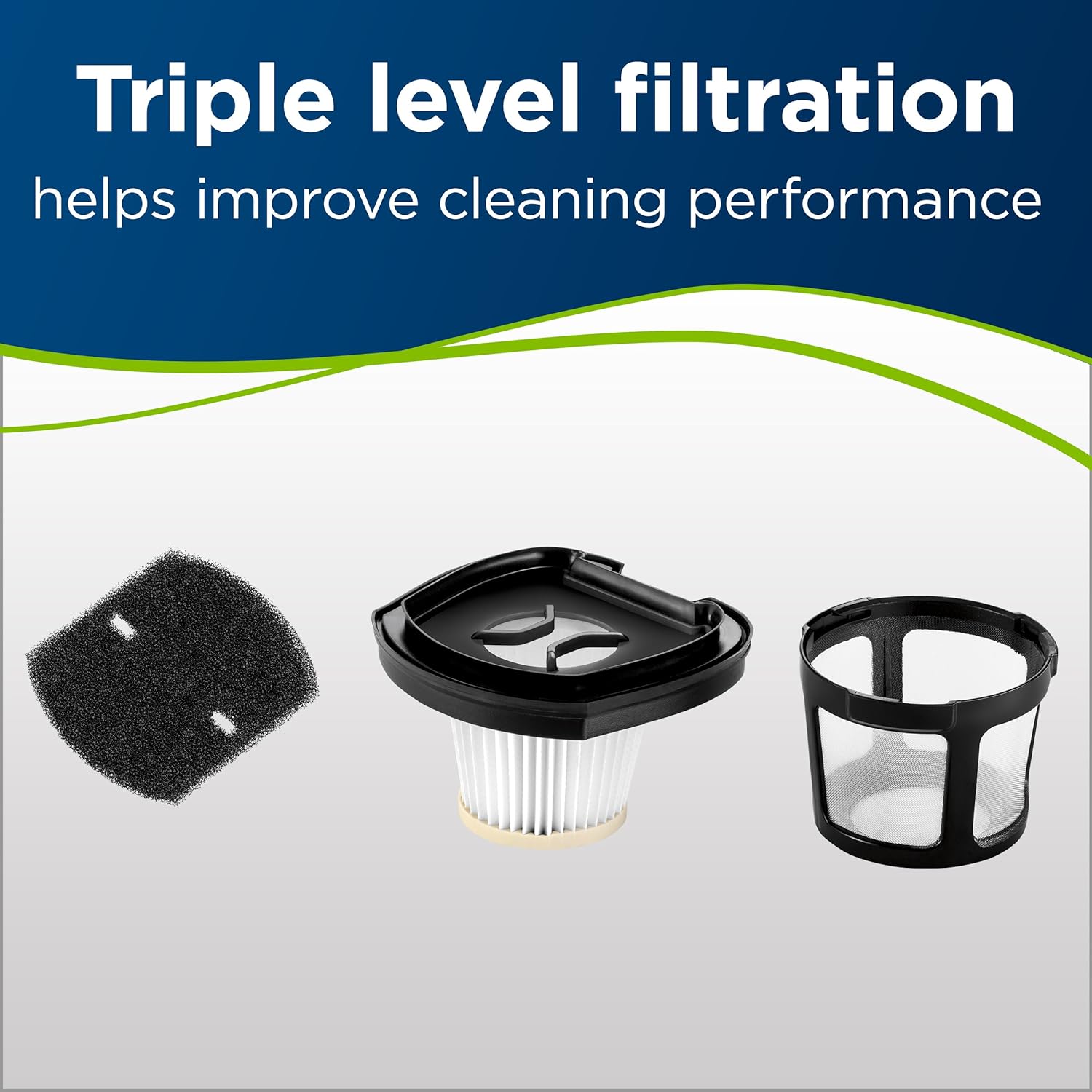 One of the standout features of the BISSELL Pet Hair Eraser Cordless Hand Vacuum is its large, easy-to-empty dirt bin. No more struggling to dispose of pet hair and debris – simply empty the dirt bin with ease. The triple level filtration system helps improve cleaning performance, ensuring that your home is spotless.