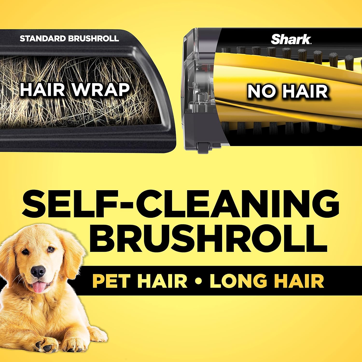 – Self-cleaning brushroll for powerful hair pickup with no hair wrap