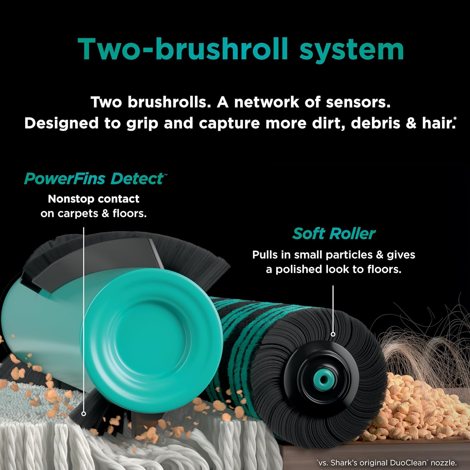 – The DuoClean Detect technology with two brushrolls and sensors automatically adjusts suction and brushroll speed for optimal cleaning performance on both carpets and hard floors.